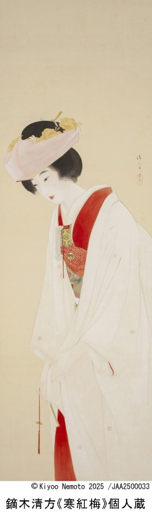 山種美術館で上村松園、実は1番良かったのは鏑木清方の『寒紅梅』だった。柔らかな筆は白無垢の若い娘を象り、その静けさが美しい次のストロークを予感させる。ついつい「欲しい」とつぶやいた。「ついつい」って言葉ってあったっけ。